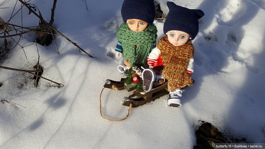 Мои что-то тоже гулять захотели. Они на саночках только по первому снегу проехались. А сейчас уже сугробы, в которых они утонут. Кое-кто ещё в жизни снега не видел… Надо собрать на прогулку…
