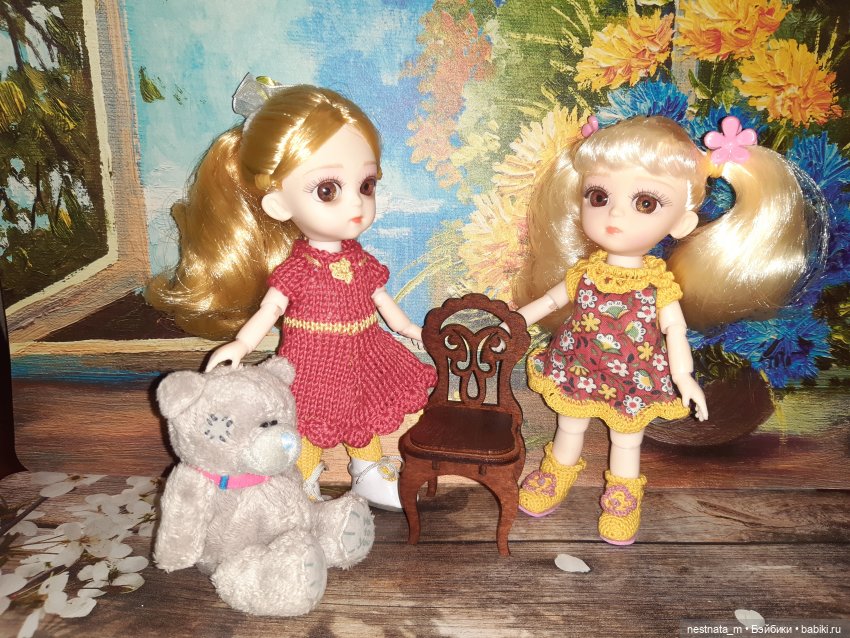 Ну и как результат вот, две девочки теперь у меня. Надо бы их переодеть, но пока не во что. Теперь еще мальчишку хочу.)