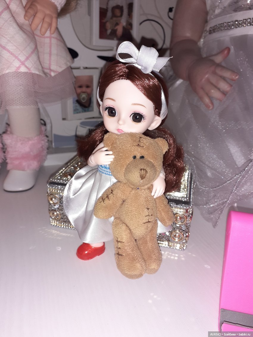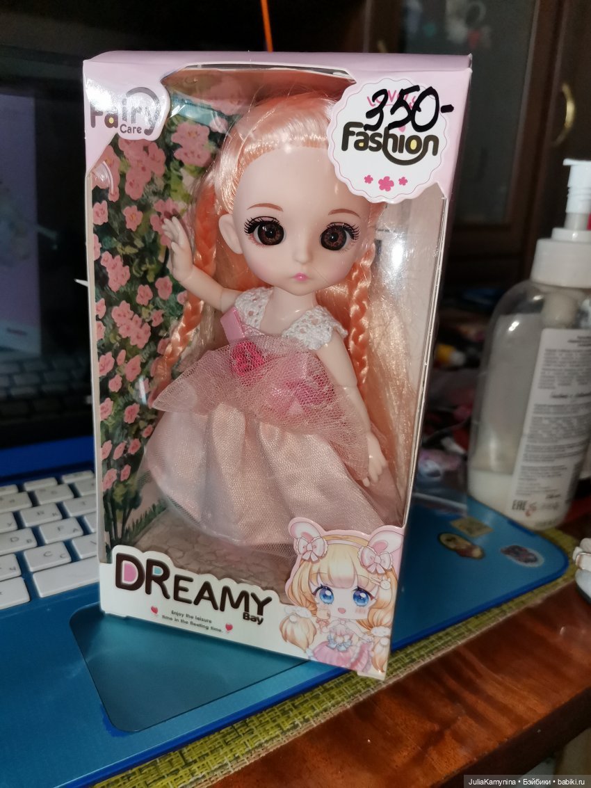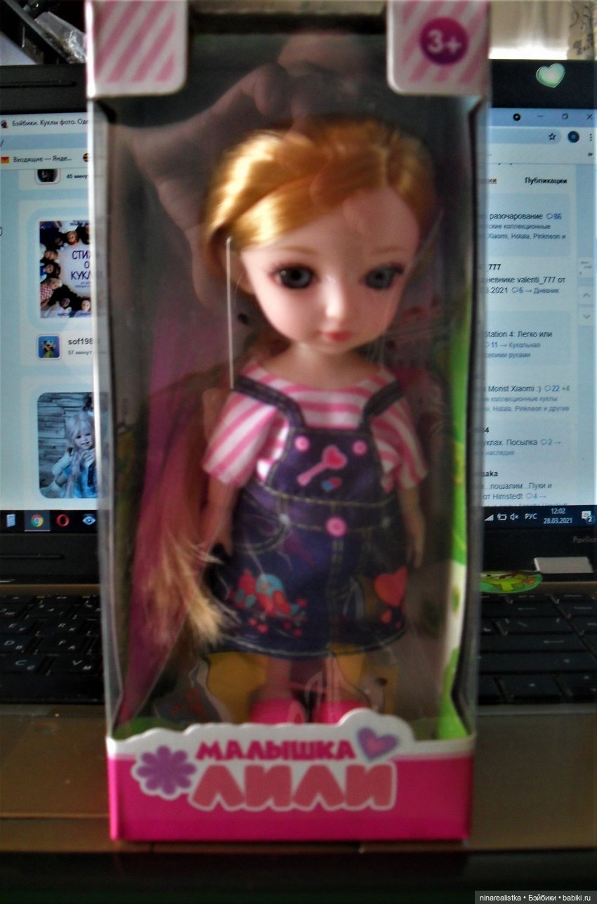 У меня сегодня неожидано поселилась новенькая. Закупали в Пятерочке продукты на выходные и неожиданно, рядом с кассой я увидела стелаж с игрушками. Мое внимание привлекла коробка с окошком, через которое на меня смотрела куколка. Милая большеглазка глядела на меня с такой надеждой, что я не устояла и положила ее в тележку. На кассе меня ждал сюрприз -сегодня и завтра на игрушки у них скидка 50%.