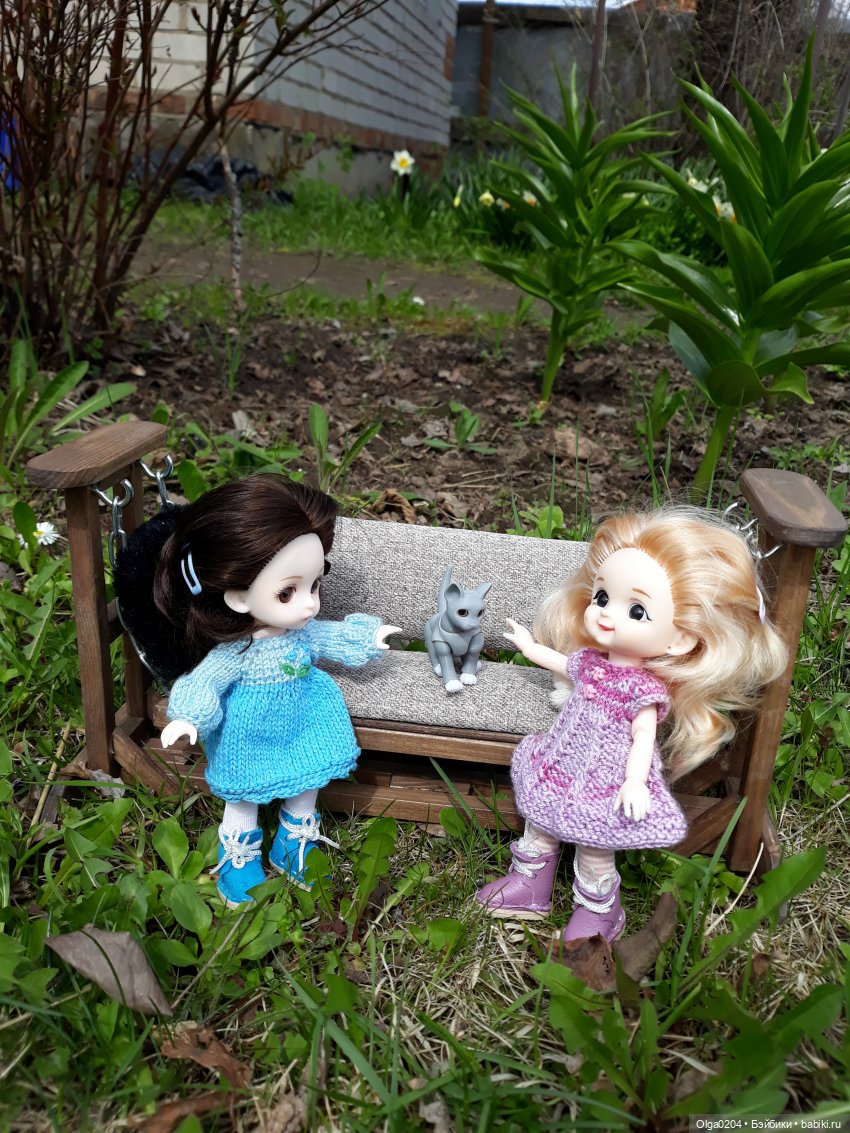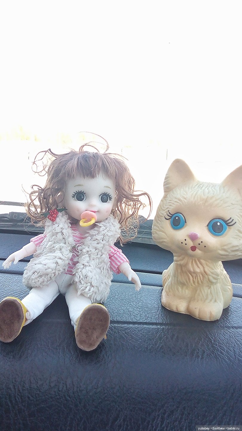 Утром вызвалась поехать со мной самая спокойная Тонечка. Но на улице тогда было ещё холодно: утром всего +2 градуса. А Тоня у меня новенькая, не успела обзавестись тёплой одеждой. Пока я думала, она уже вовсю собиралась: одолжила у Маргаритки свежесвязанное пальто. А на Тоне — курточка. Глянула на её голые ножки, как бы не замёрзла в дороге в сумке. Но раздумывать было некогда, поставила свою сумку ей, и пока собиралась сама, Тонечка удобно устроилась в сумке. Ну что ж, вперёд!