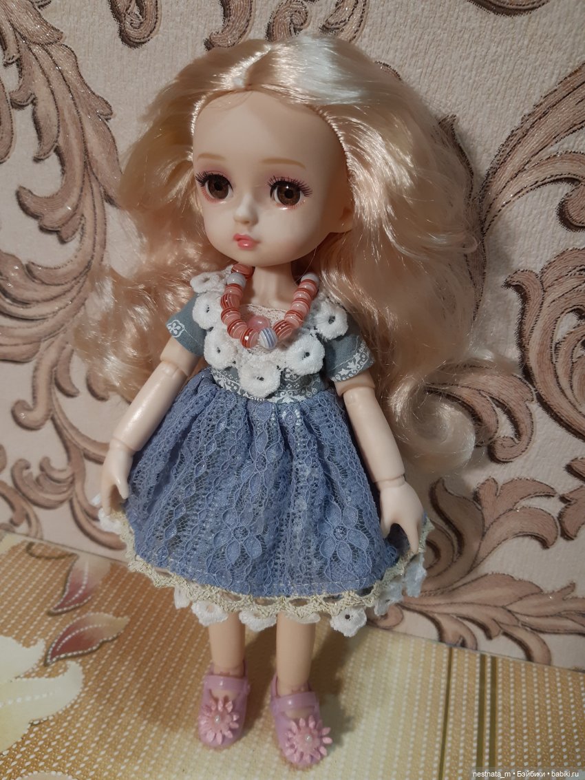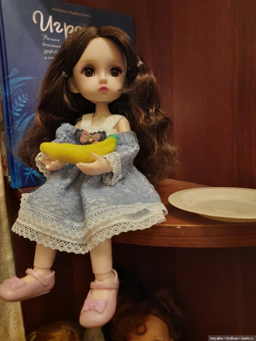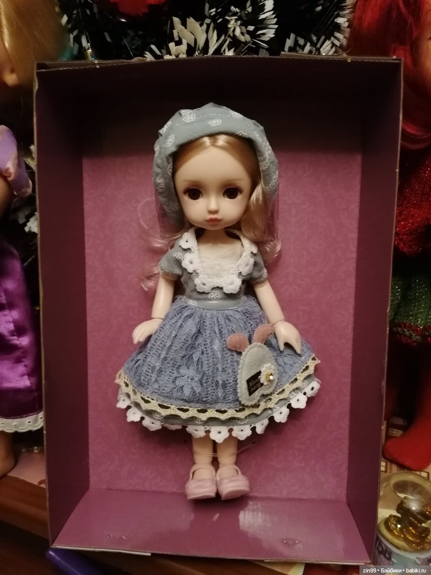 Вчера ездила за авансом в банкомат. Рядом с банком расположены мои любимые магазины — Фикс Прайс и Галамарт. Я в них наведываюсь дважды в месяц — в день аванса и в день зарплаты. Но не с целью что-то купить, а посмотреть. В Фикс Прайсе я посматриваю нужных мне Аврор. Вчера «моей» не было. А в Галамарте не предполагала, что встречу эту девочку. Недавно у меня появилось желание приобрести куколок Баболи, но малышку. На полке были только 4 коробки с девочками ростом 28 см. Я последнее время предпочитаю кукол блондинок. И за стоявшей брюнеткой стала искать блондиночку. Она нашлась! И я ее не раздумывая купила. Остальные три куклы были брюнетки.