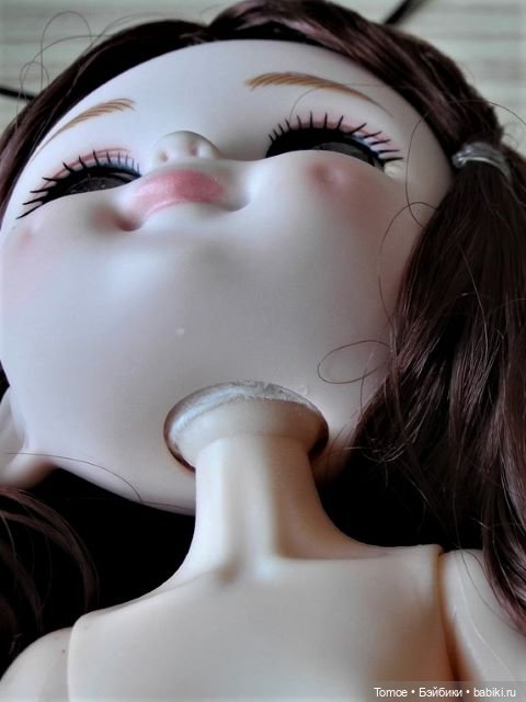 Голова 3. Теперь «удивляшка». Недавно появилась на Али, опять для тела 30 см, и шейное отверстие ещё больше. Шею опять наращивать. Как это выглядит в ракурсе снизу.