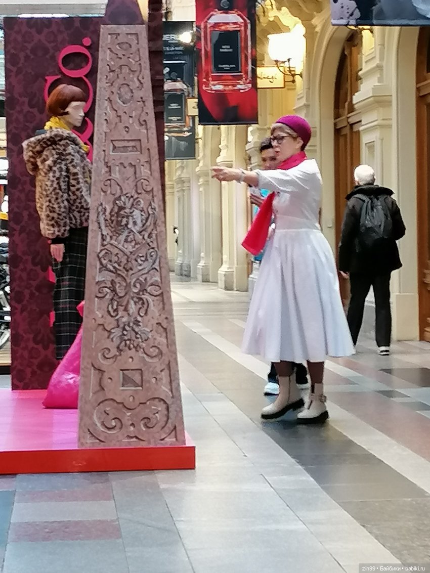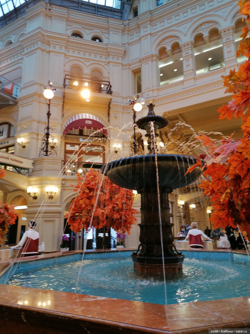 А вот мы гуляем по Манежу, потом около Красной площади и зашли в ГУМ! Это октябрь.