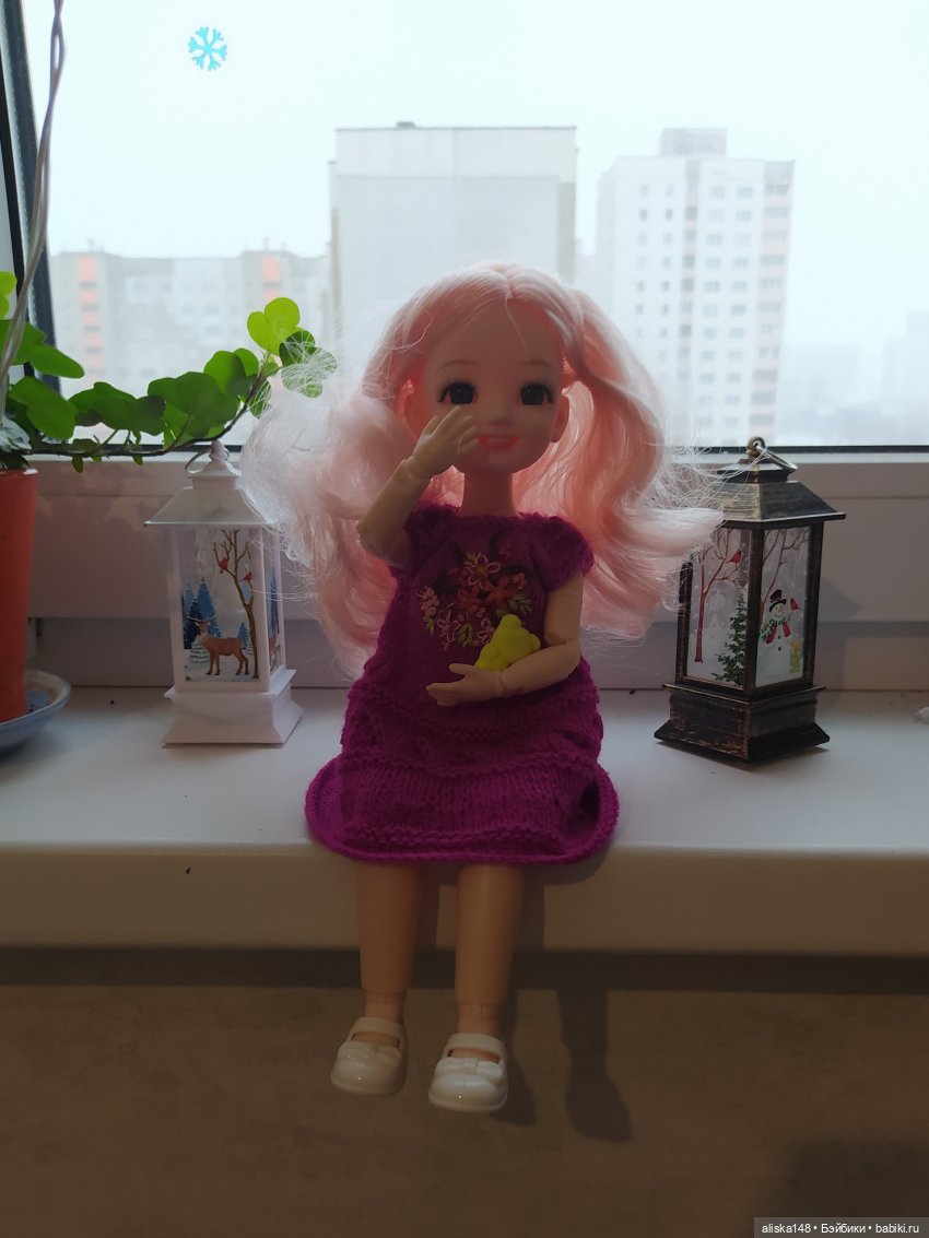 Собираясь в деревню всегда беру с собой кого то из кукол, хотя там у меня живёт добрая половина коллекции, обычно беру модельку на которую планирую что то связать.В этот раз со мной поехала Ульяша, она давно требовала платьице и вот пришла ее очередь.В пятницу перед отъездом я получила посылку с пухом норки, все ниточки тоже поехали со мной за город.