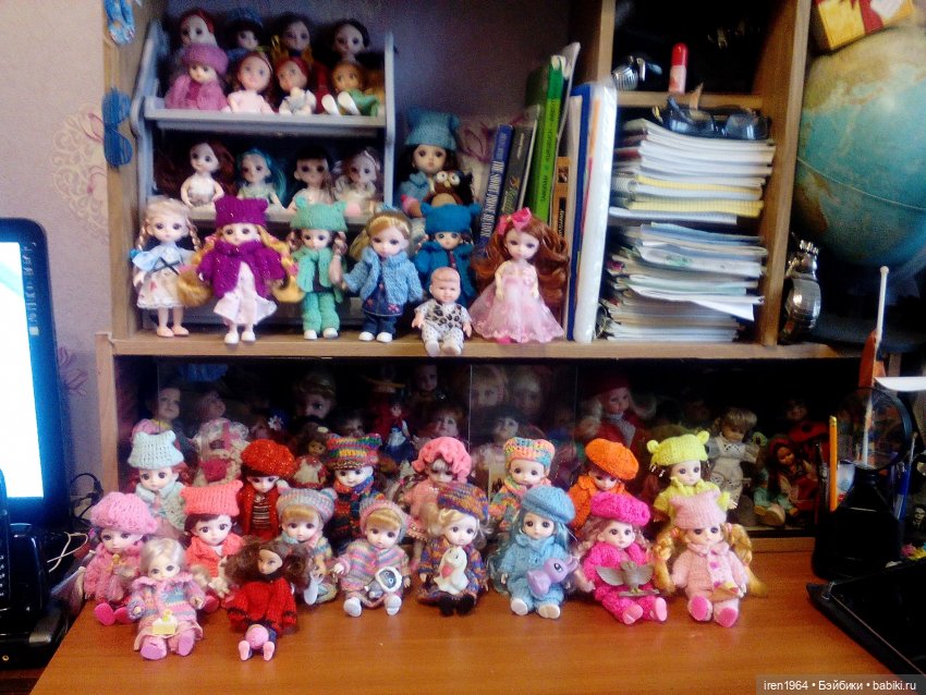 Думаю, почти у всех сейчас живут малышки-баболишки. Такой разномастный народец удобного размера, с хорошей подвижностью тел, внешностью на любой вкус и бюджетной стоимостью. И ведь если только поселяешь одного, он тащит за собой другого, а тот, в свою очередь, следующего. Оглянуться не успеешь как уже полон дом. Вот тут-то и начинаются проблемы: каждого одеть-обуть, (а малюсенькие наряды шить не очень легко), всех разместить, сфотографировать и т.д.
