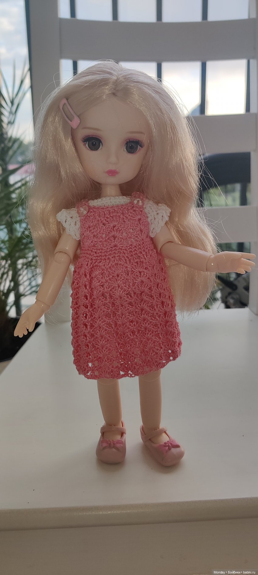 PS. На фото белое платье было связано в январе, сразу после покупки, а коричневое -вчера. А ещё, Сонечку удочерила Барби БМР по имени Роза, у которой уже есть дочурка Лиза (Lori).