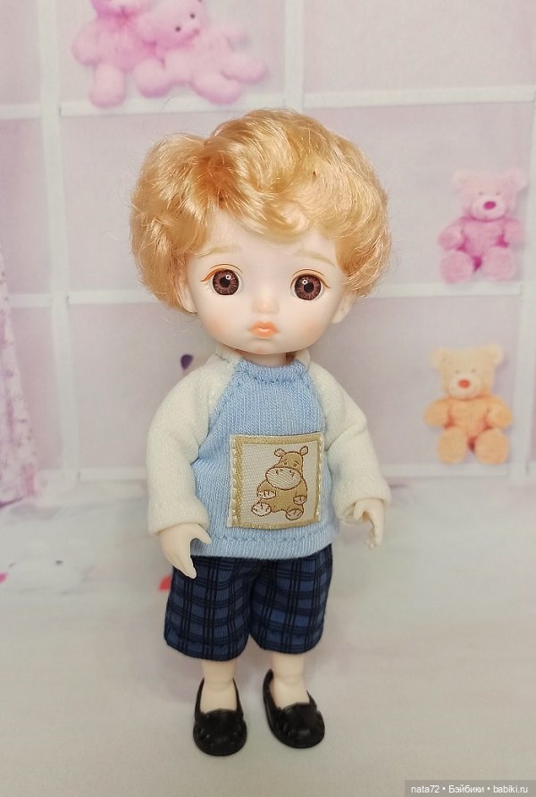 Ещё у нашего Лёшика есть старший брат — Вовка. Он такой же шатен, как Ваш малыш, только я его на тело повыше посадила, он ростом 19 см, всё-таки старший брат. Он пока ждёт, пока я ему одежду доделаю, потом покажемся)))