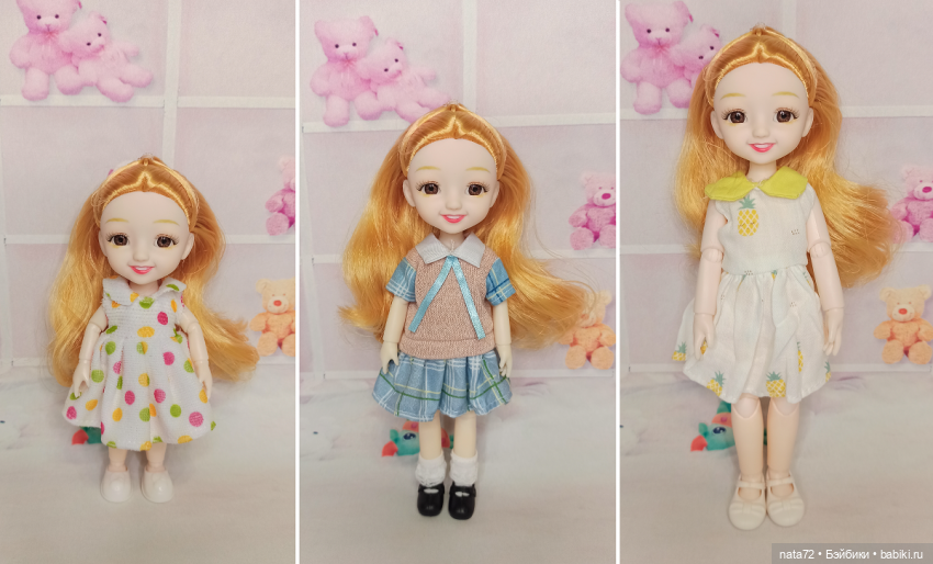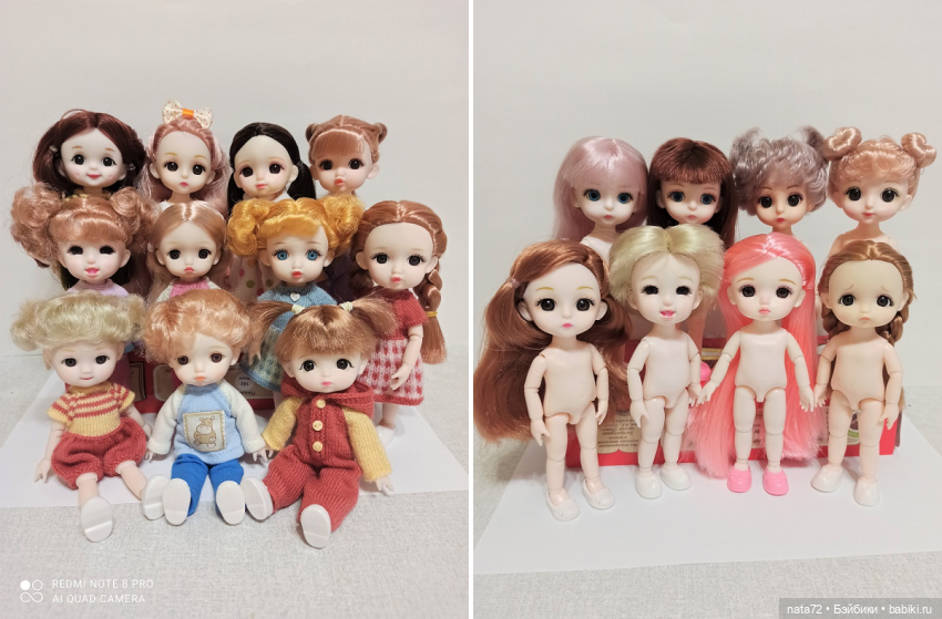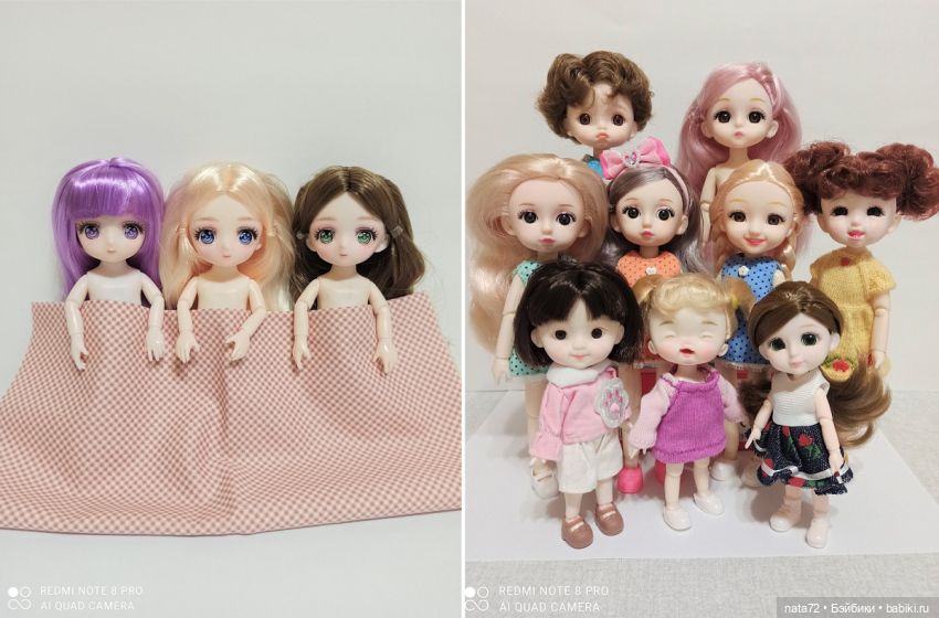 Здесь слева — 3 девочки-аниме, тоже ростом 16 см, пока без одежды; справа — внизу 3 малышки по 13 см, остальные те, кого пересадила на тела повыше, т.к. они у меня постарше, получился рост 19 см: