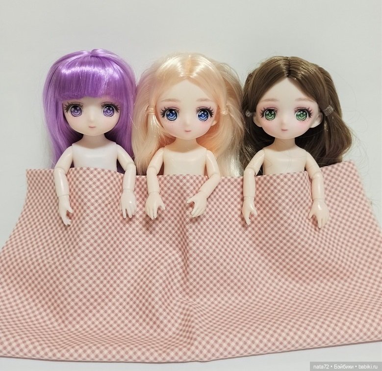 У меня недавно тоже поселились три подобные куколки-анимешки, только на телах от маленьких баболи, так как они у меня предполагаются в мою малышовую группу. Мы пока в ожидании одёжек: