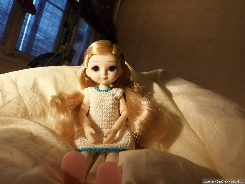 Мне тоже мама подарила шарнирную куклу 22 см ростом, купила ее в киоске «Союзпечать». Что любопытно — у моей большой бабольки стопы оказались не шарнирные.