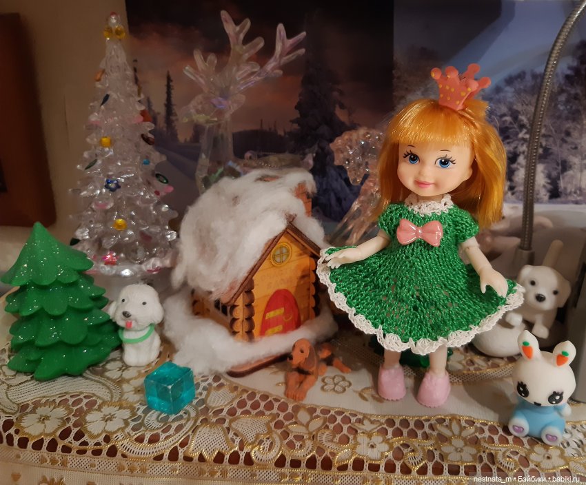 Вот недалеко от ёлочки стоит красавица с золотыми кудрями! Улыбается! В кружевной юбочке! Загляденье! Настоящая принцесса!