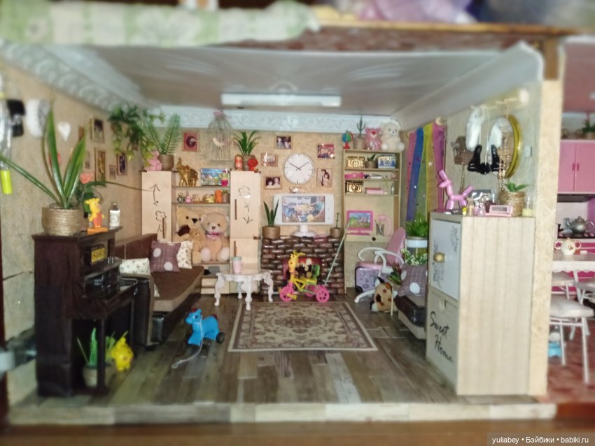 Я вот не помню, у вас нет топика, чтоб показать все комнаты? Мне кажется, что всем интересно… Я бы с удовольствием все вместе посмотрела. Это отдельный домик или полки в шкафу сделаны под комнаты?