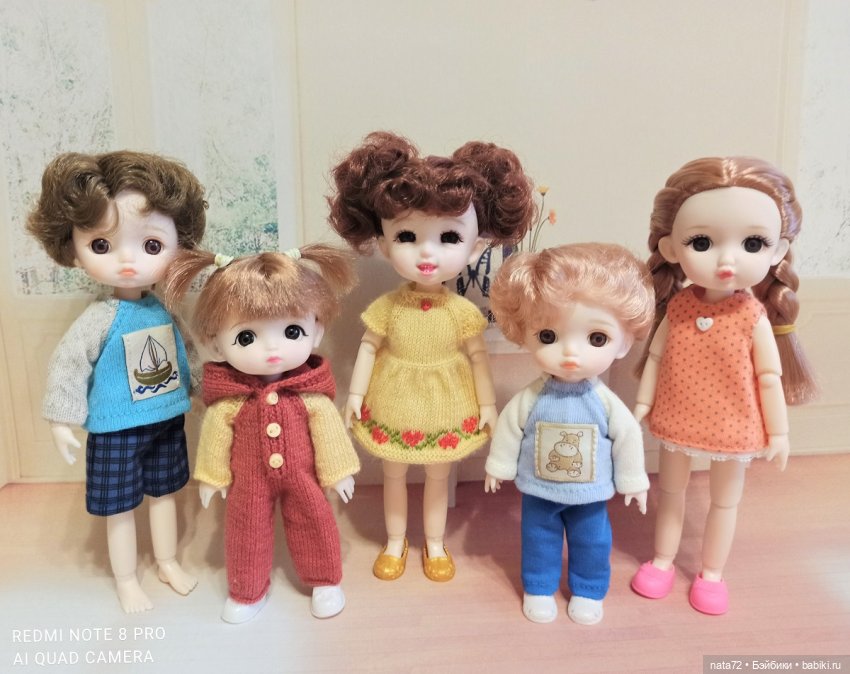 Некоторые головы от малышей-баболиков пересадила на другие тела, получились ростом 19 см. Вот так смотрятся вместе: