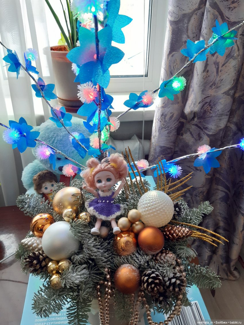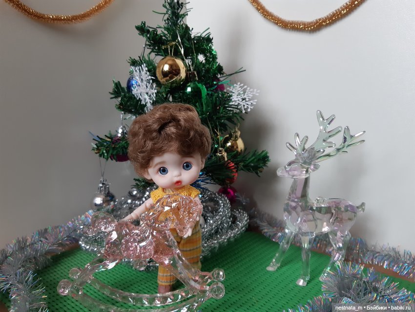 Разглядела сверху молчаливого Прошку. Посмотрела на него, посмотрела… и спрыгнула к нему. Что-то объясняла, говорила. А потом взяла за руку и потянула куда-то молча. Оказалось, что пока ёлочка стоит, Айка решила Прошке её показать! Он же ещё не видел такую красивую ёлку! Прошка сначала упирался, но увидев ёлочку, сам к ней с радостью побежал! Стал яркие шарики трогать!