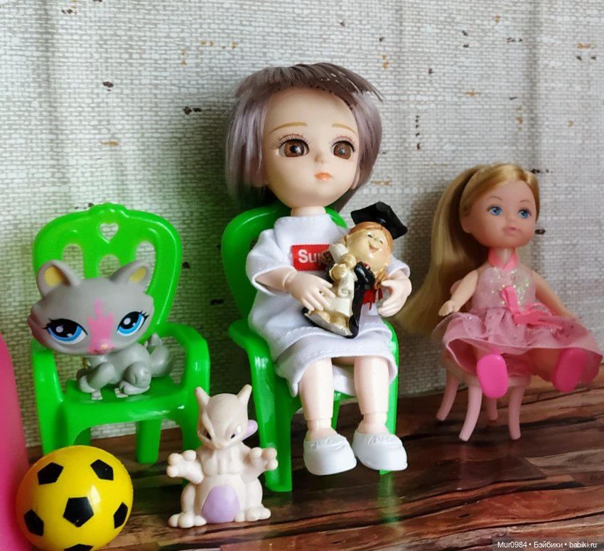 Тоже совершенно не увлекаюсь кукло-детьми, но стоило поселить двух баболей, как сам собой образовался детсад с питомцами и игрушками :) На фото нет еще лыжницы из Пятерочки и совсем мелкого с Али. И кукло-бабочки из киндера