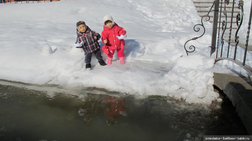В гости пришли мои куколки Леночка и Илюшка, кораблики пускать будут.