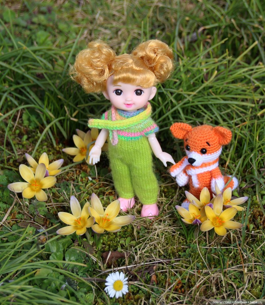 Жёлтый цыплёнок мне так понравился, что приехал ещё один такой и парочка сестричек с каштановыми волосами.(На самом деле двойняшки потом переселятся к моей дочери, но пока они все вместе).
