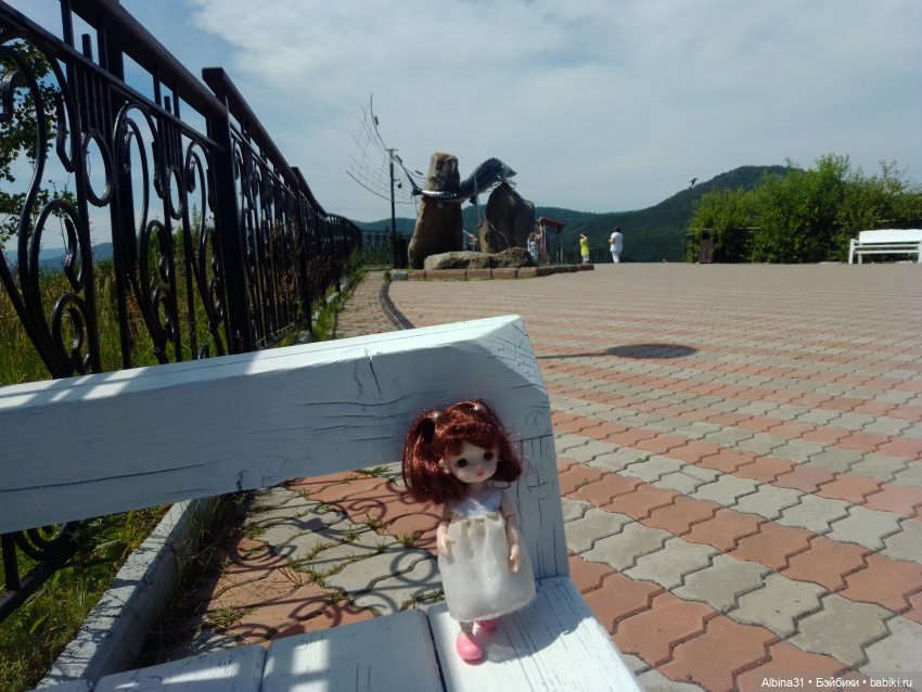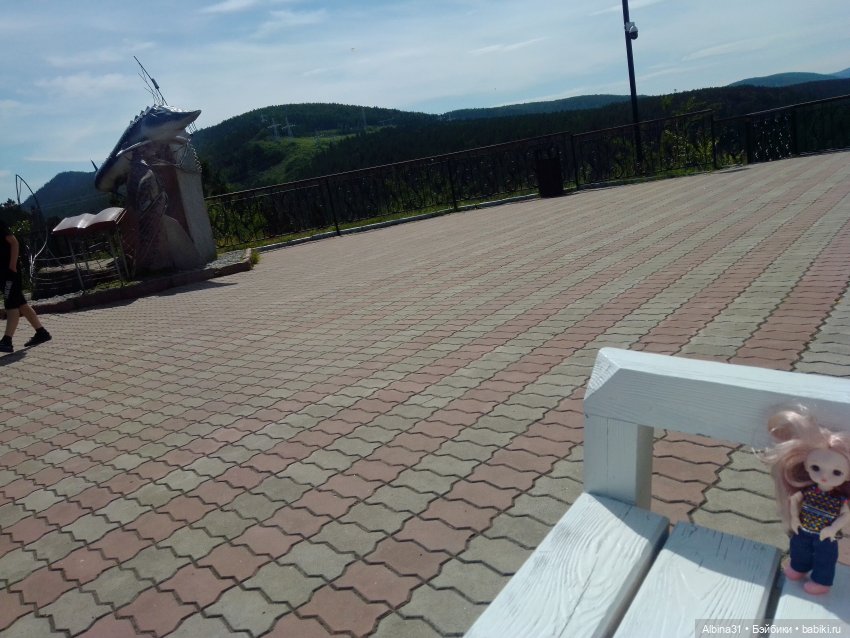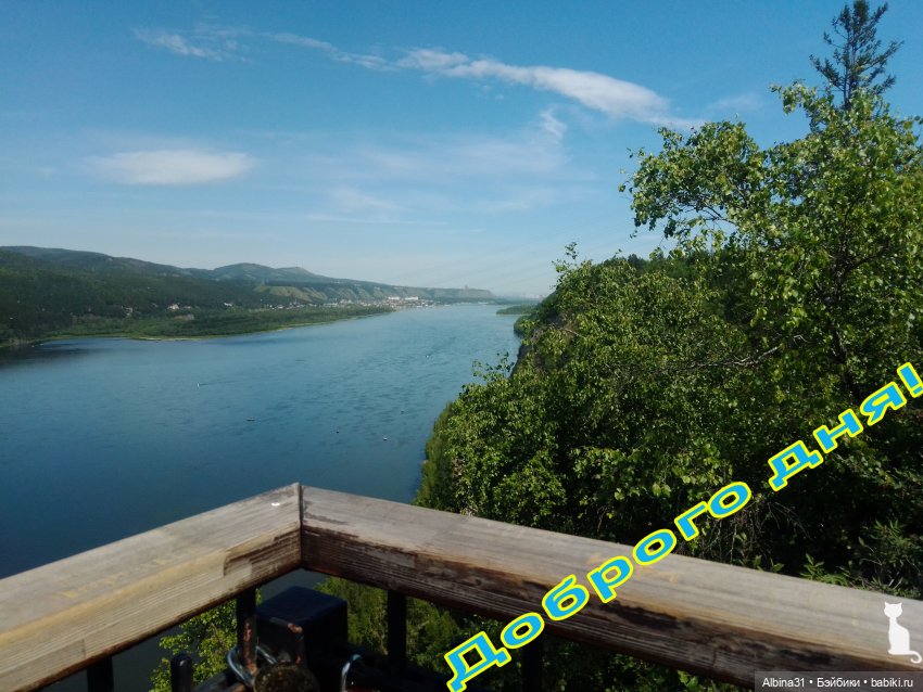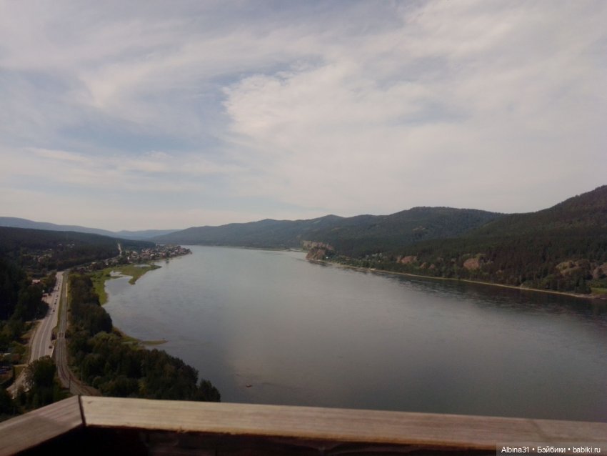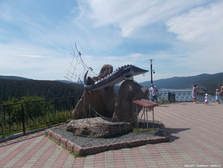 Недалеко от Красноярска есть деревня Овсянка, родина писателя Виктора Петровича Астафьева, написавшего повесть «Царь- рыба». В честь писателя на смотровой площадке установили отлитого из металла четырехметрового трехсоткилограммового енисейского осетра. И теперь эта площадка так и называется смотровая площадка «Царь-рыба», куда я давно собиралась съездить . Хоть место это вполне знаменитое, но добраться общественным транспортом нельзя. Автобусы проходят мимо, нет остановки. От Овсянки пешком почти пять километров, но есть другое селение, Слизнево, от этого населенного пункта почти четыре километра шагать. Вот этот путь мы и выбрали, но это будет другая история :) А сейчас просто смотровая и вид с неё :) Я почти не фотографировала, хоть и был будень день, но народ толпился, не приятная неожиданность :)