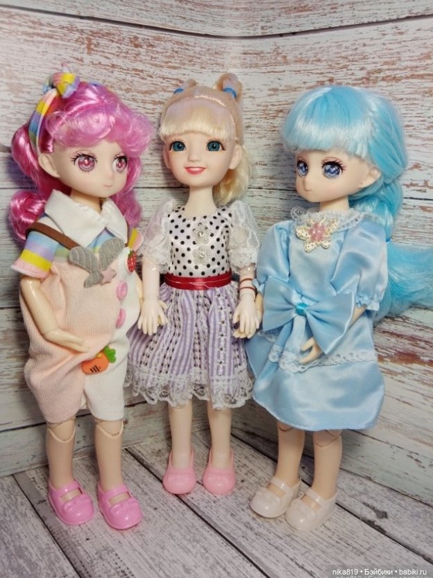 Уже достаточно давно приехала ко мне дивная куколка-улыбашка. Решила я посмотреть как живьем выглядят китайские шарнирные куколки 30см высотой и заказала парочку на пробу. Куклы бюджетные, очень миленькие. Сегодня покажу одну из своих новеньких. Очень эффектная мимика у куклы, хорошая подвижность. Куколка сама хорошо стоит. Прошивка под прическу, волос очень мало, но с косичками вид имеет приятный. Подумываю перепрошить ее. А пока она ходит как есть, со своими милыми косичками. Из нюансов — коротковата длина рук для этого тельца. В целом не критично. Одежда от Паолок кукле подошла, слегка большевата в объеме, но ростовочка ее. Милая малышка очень! Вдохновляет на фотосессии и новые платья)))