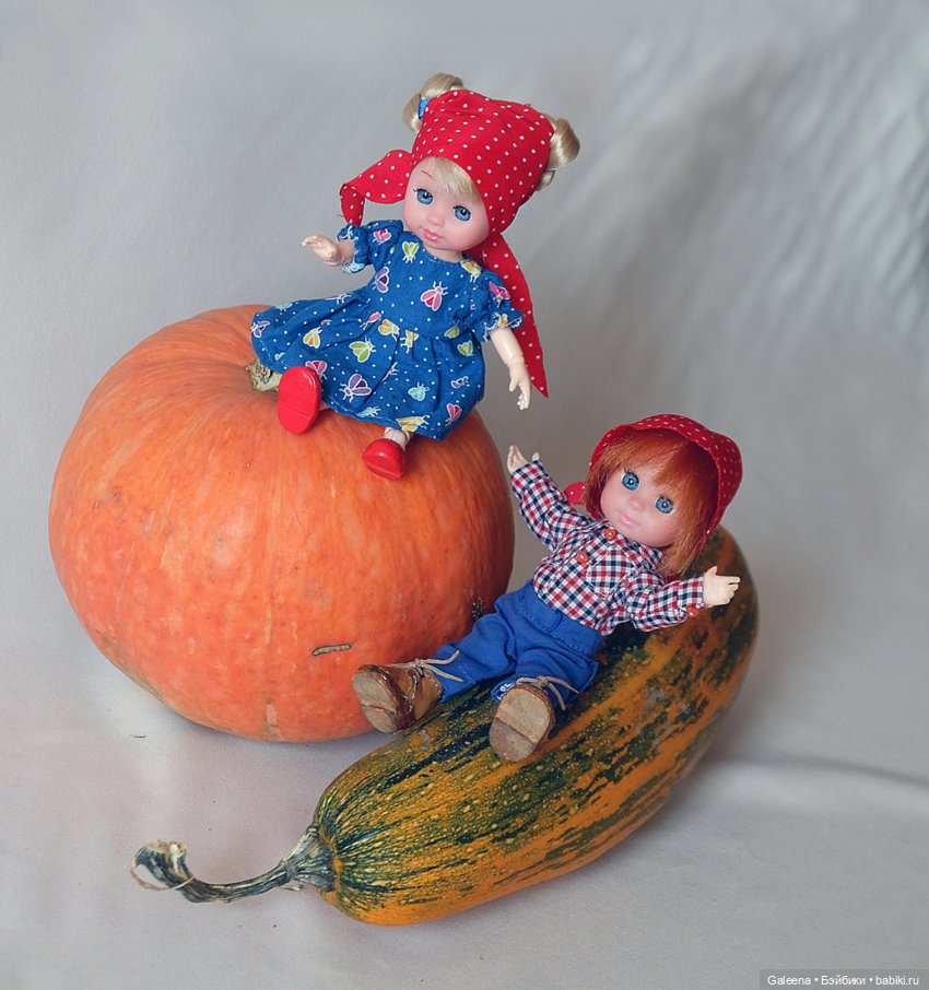 А баболики, да, они такие — не успеешь оглянуться, как возьмут в плен. Я держусь из последних сил, и у меня только двое — Анна-Мария Незабудкина и Янтарик (с головами Машенек). Они шлют Надюшке свой тыквенно-кабачковый привет.