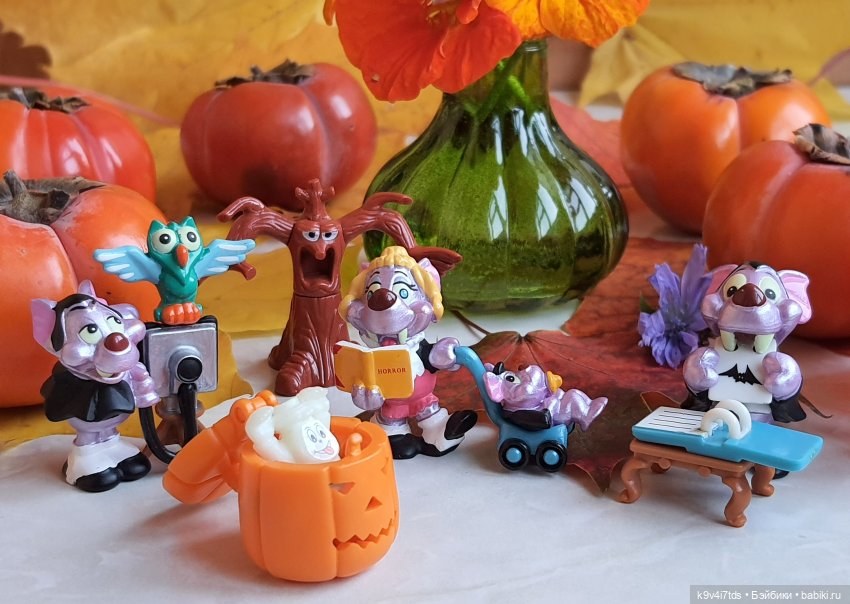 У нас с детства сына, осталась только вот такая парочка, а был еще один и деревце, только от него половинка сохранилась. Такая ловкая серия забавных ребят! Сын любил больше того, у которого подарочек, в котором то ли цветочек, то ли косточка, что больше вероятно! Ну в общем и монстрики выбрались наконец то на праздник! И кричат, — Ура!