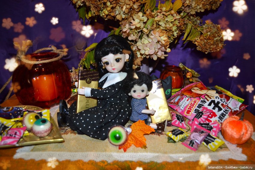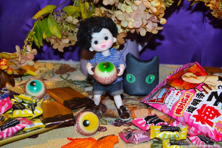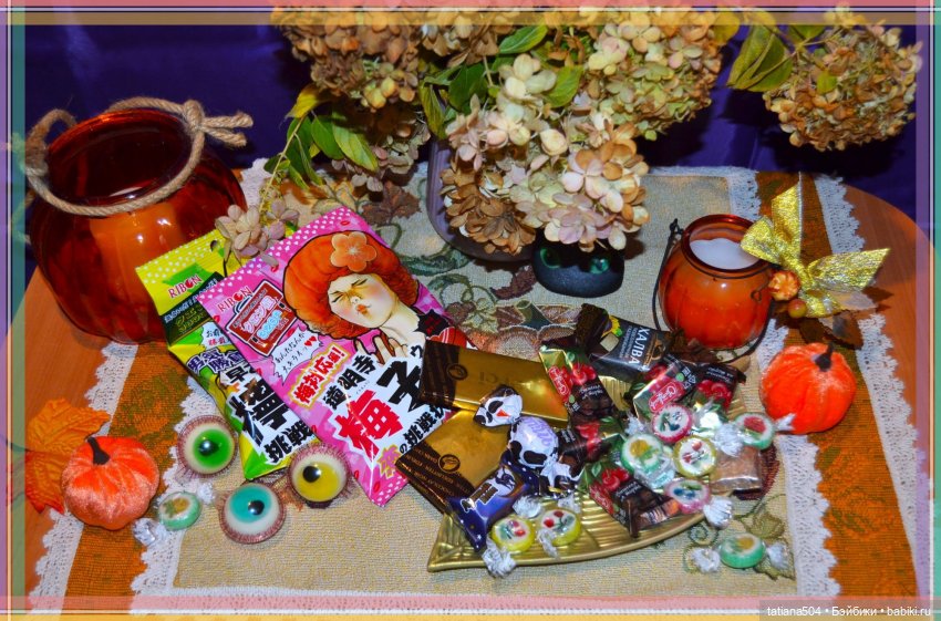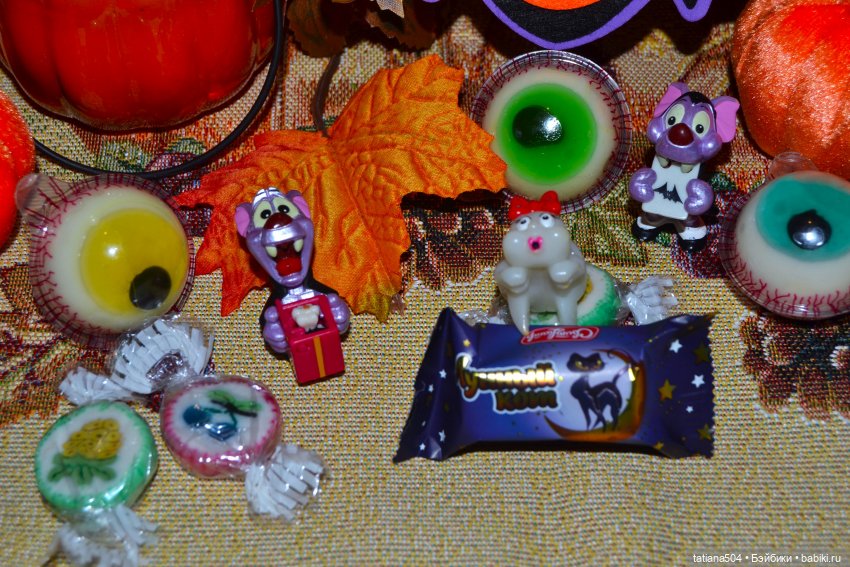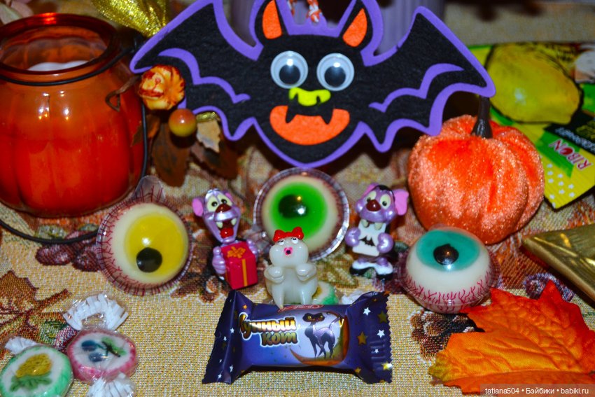 Кроме всего прочего, я и не планировала их фотографировать, но накануне сын накупил всяких прикольных сладостей и мы их почти все перетаскали, а как же праздник подумала я, надо же и на Хэллоуин оставить вкусненького…