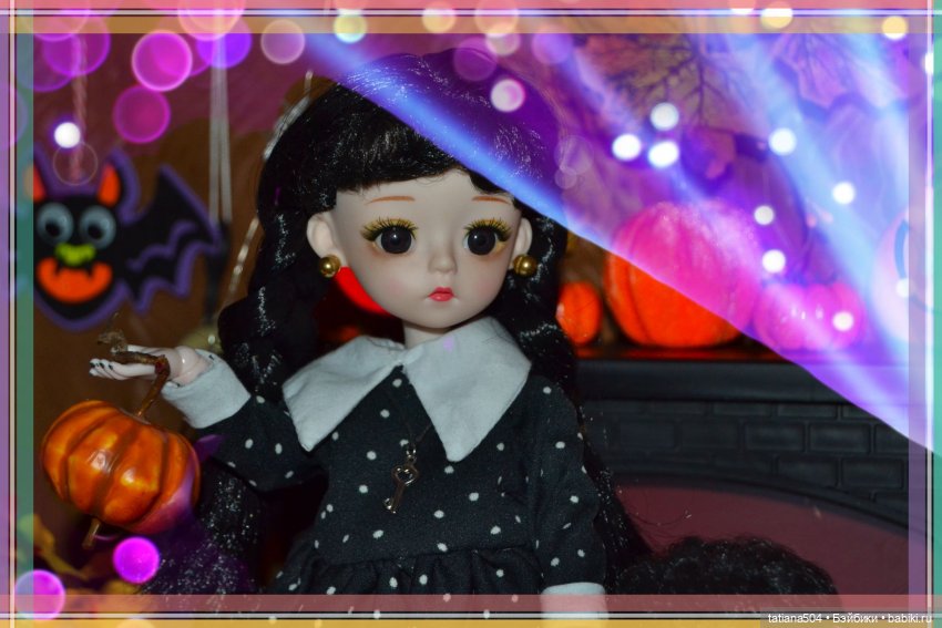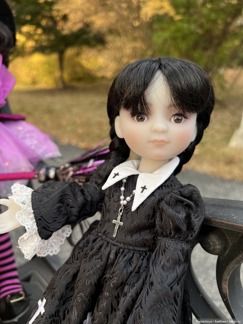 Да, я уже знакомила вас с моей Уэнсдей в прошлом году, это простая шарнирная игровая куколка в достойном исполнении, ладненькая такая, (
