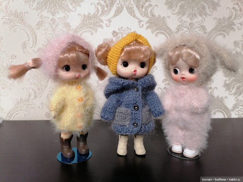 Всем здравствуйте. Свой 100-й топик я как-то пропустила, ну ничего, сегодня 110-й. Тоже вроде как юбилейный.Под самый конец 2024 года приехали еще три бабольки. Покупала на озоне, а ехали они из Китая. И ехали ну очень долго. Принарядила и привела знакомиться.