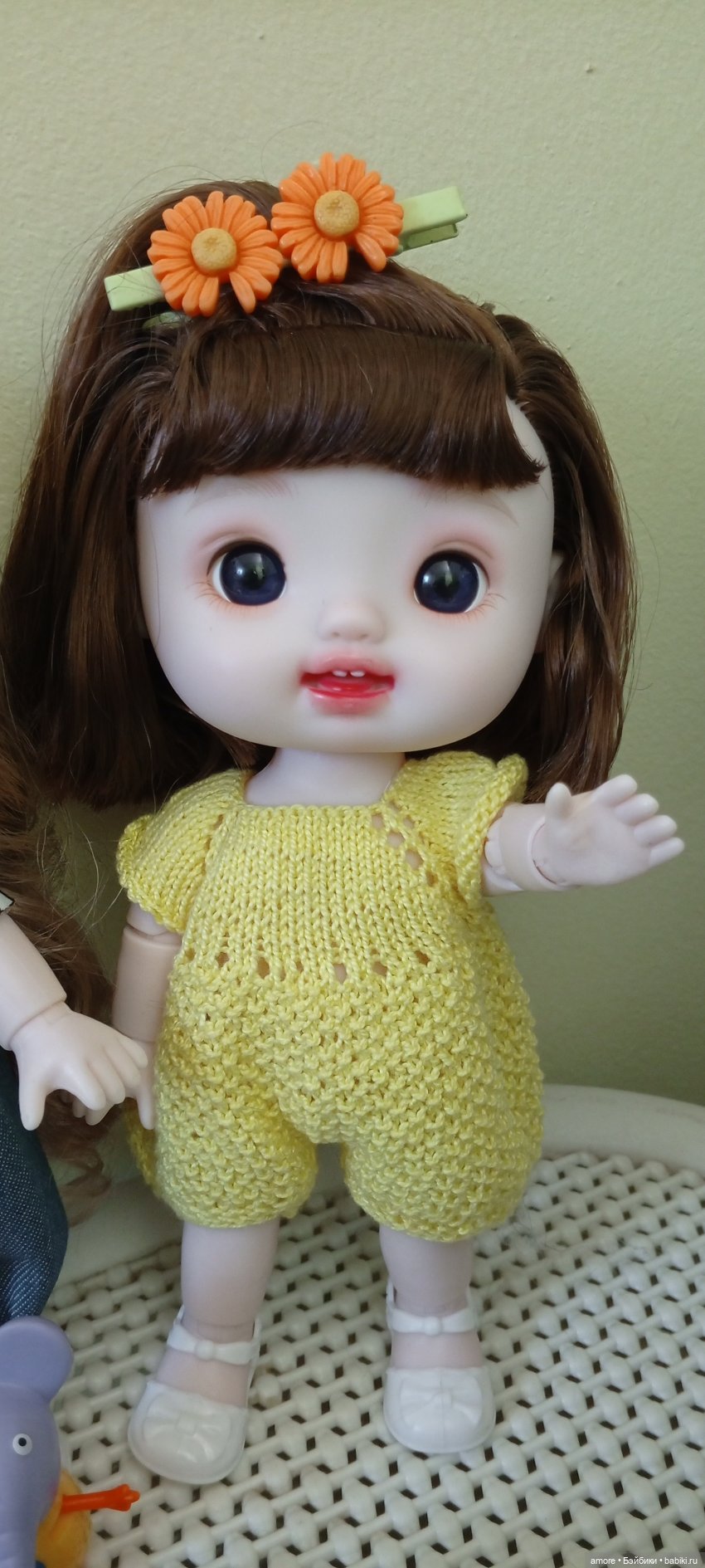 приветствую всех, решили с девочками вам показаться, приехали совсем недавно вот такие пухляшки ростом 22 см шарнирные, одежду на первое время нашли с чужого плеча