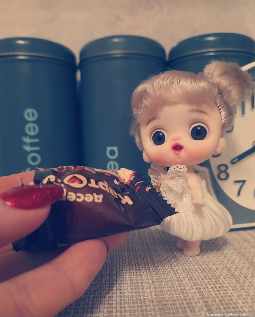 В гости наши с дочкой баболи из Фикспрайса. Моя до сих пор выглядит прилично, дочкина же живёт полной жизнью))).