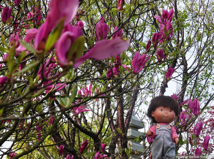 Не обнаружив цветов сакуры, мы с Женей пошли смотреть магнолии