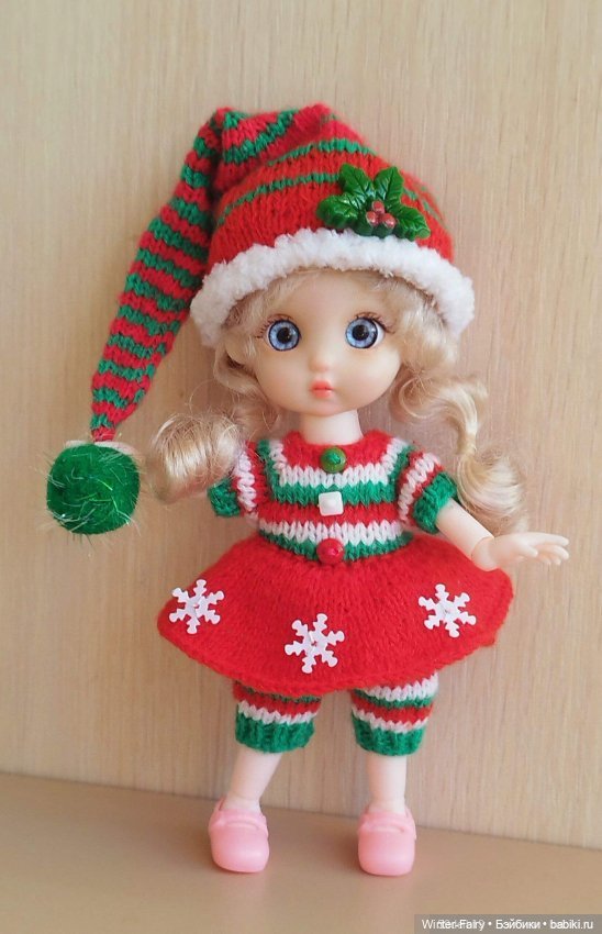 Кукла баболька, костюм "Рождественский гномик", одежда для кукол, вяжу для баболей