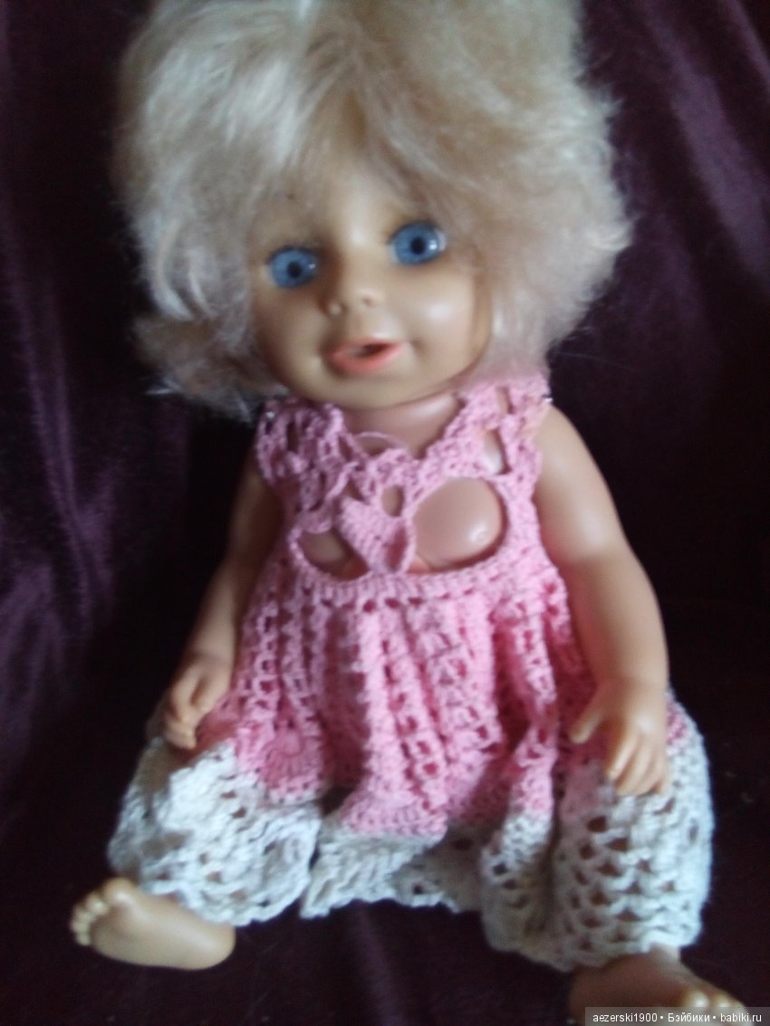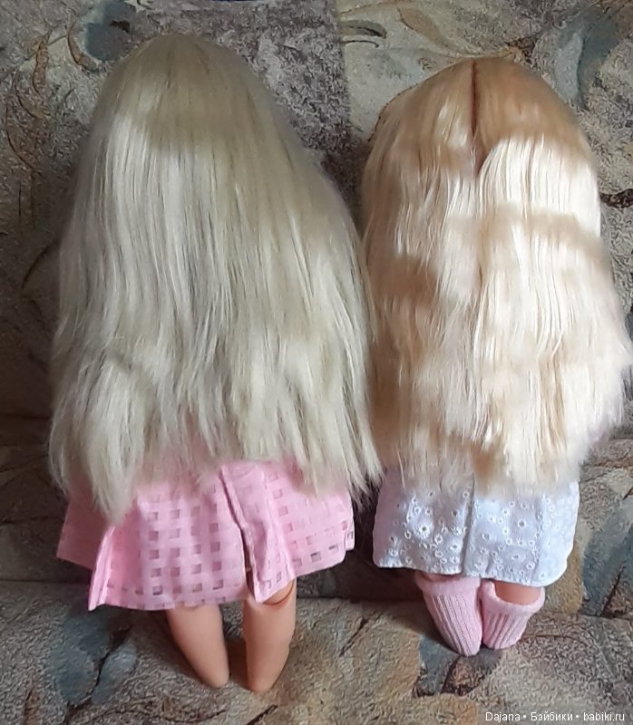 Мое мнение, эта кукла для такой малышки тяжеловата. Может, лучше ей купить какую- нибудь винтажную мягкотелую куколку от Zapf? У них очень хорошего качества волосы. Или другую какую немецкую.