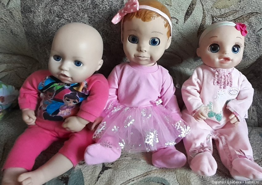 Привет всем жителям кукляндии! Помогите, пожалуйста, кто знаком с такими куклами, выбрать подходящую.У меня 3 дочки, и старшей доче купили сестричку Baby born оригинальную, качество очень хорошее, волосы отличные, винил приятный, но цена не маленькая.И дочка рада до безумия, куколка красавица и долгожданная, но меньшая доча увидев её, сразу хватает ее себе, целует, хлопает в ладоши, обнимает и убегает с ней.При попытке забрать, крики и плачь.У меньшей есть три хороших куклы, но два лысика и у одной короткие волосы.Дочке видимо нравятся её волосы она их расчесывает.Средняя доча сказала, что кукла красивая, но ей нравятся лысики.Так как доча еще совсем маленькая, ей 1г7месяцев, то она обращается с куклами еще не совсем аккуратно, и покупать оригинальную дороговато, да и две абсолютно одинаковые куклы нам не к чему.Я надумала купить аналог Sister baby born, перерыла интернет, но там много фирм подделок под эту куклу.Отзывов мало, и кому что нравится.Фирмы есть Yale baby,Lisa Jane, Карапуз и еще какие то.
