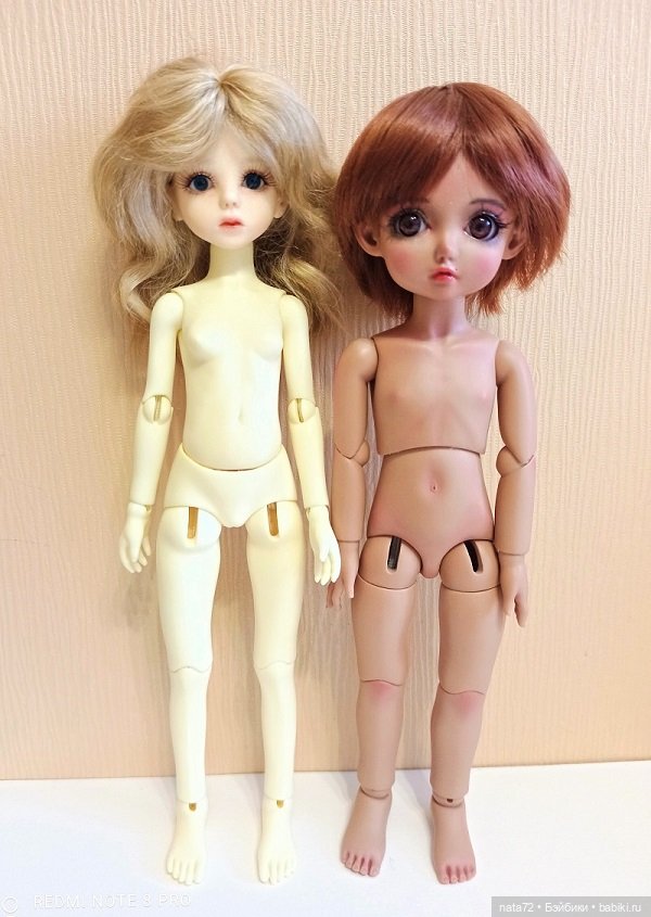 Извиняюсь за быстрофото, немного засвечено получилось, освещение сейчас неподходящее. Но очень хотелось показать обеих девочек рядышком — может быть, Вам легче будет сориентироваться в телах.