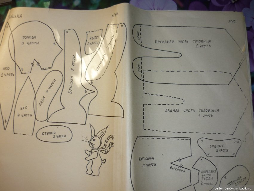 Второй и третий лист с выкройками вырваны. Может, и в конце не хватает — последний лист отсутствует. Размер альбомного листа — два листа А4, так что сканировала по половинке, а в конце и 3-4 раза один лист сканировала в разных положениях, чтобы каждая игрушка целиком вошла.