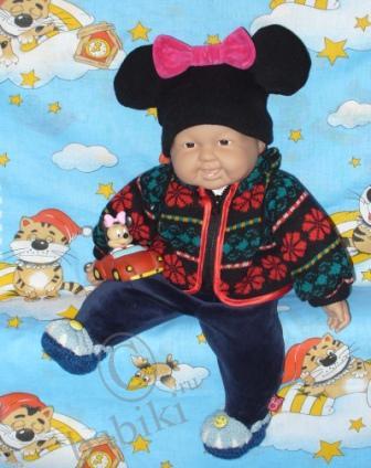 Мне шапка Микки больше по душе, но и беретик нравится тоже. А вообще то, нашему молодцу все к лицу! Шучу, просто весь домашний арсенал перемерили.
