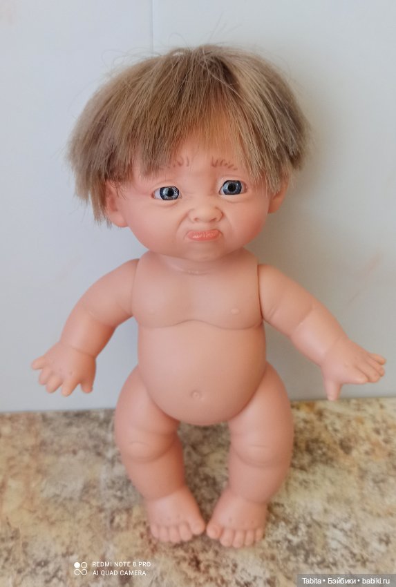 Честно говоря, я ожидала, что головушка будет поменьше размерчиком. Ведь пупс то всего 14 см! В мыслях я уже представляла такого себе пропорционального кукленыша… но приехал головастик.