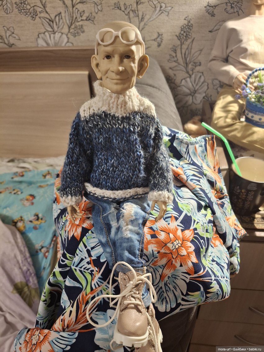 Деятельный старичок сразу отвоевал себе местечко под солнцем. Обзавелся гардеробом, дамой сердца и персональным приспешником шоколадного цвета, успел побывать на нескольких наших еженедельных кукловстречах. Вобщем сразу втянулся в движ.