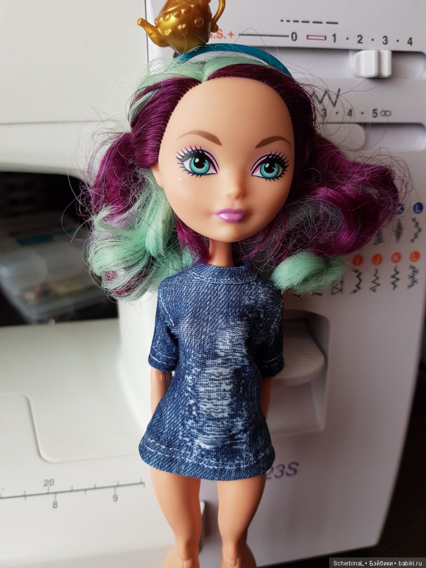 Нет-нет, не пугайтесь: это всего лишь лосины из фикс-прайса, вернее, тонкий-тонкий трикотаж с расраской под джинсы. Но в масштабе 1\6 смотрится, по мнению дизайнера Балды, неординарно.