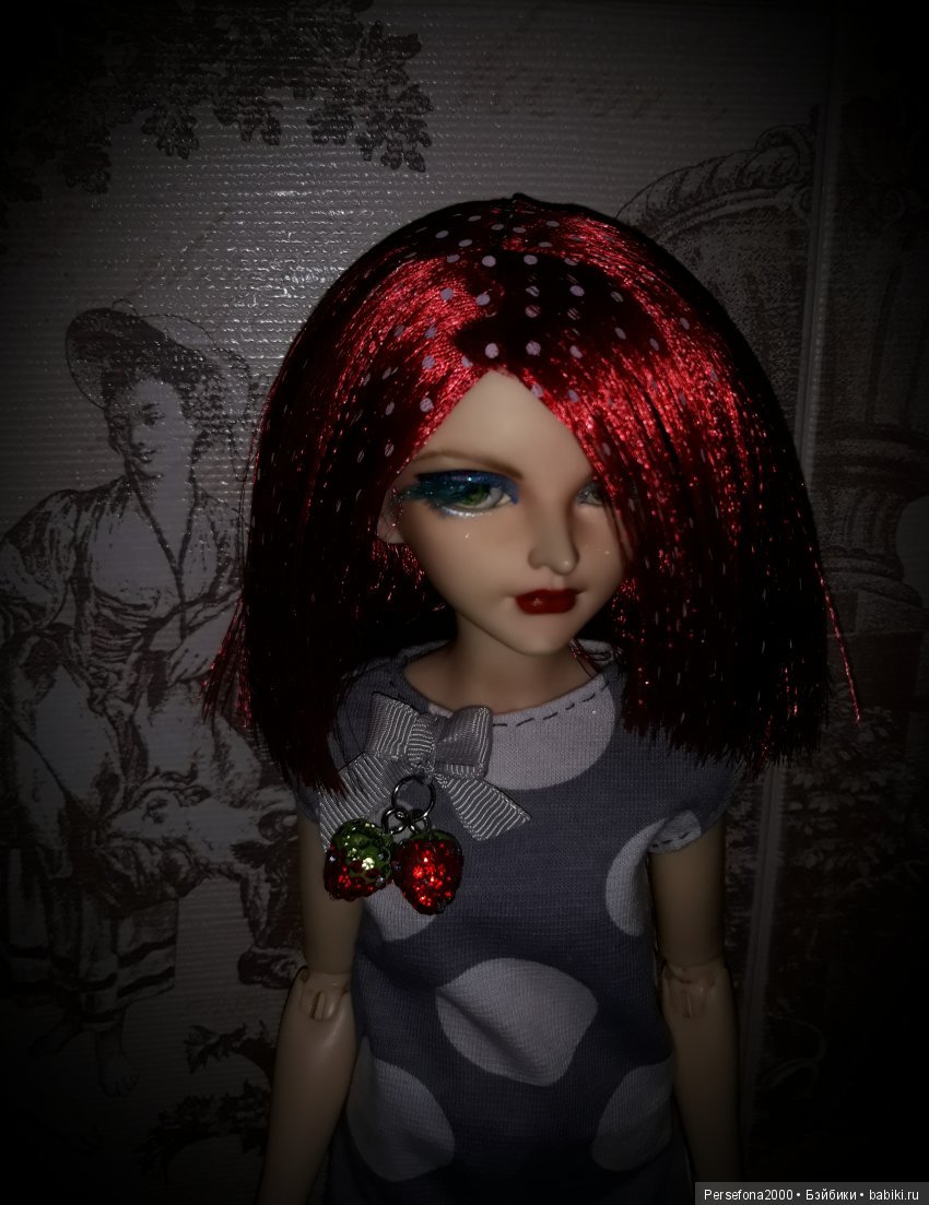 абсолютно лысаяс прорисованной стрижкой под мальчика Мокси Тинз Мелроуз. Парикмахерское искусство пришлось осваивать более серьезно после того, как у меня поселилась минифи Ульяна. Вот наш самый первый, «взрослый» парик, хоть и не отфилированный, как следует:Красный паричок уже получше: