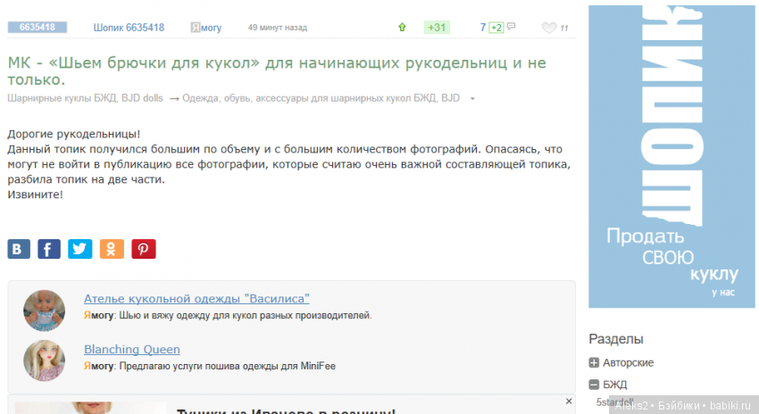 Смотрите больше топиков в разделе: Одежда и обувь для кукол BJD (БЖД): 1/3, 1/4, 1/6, аутфиты