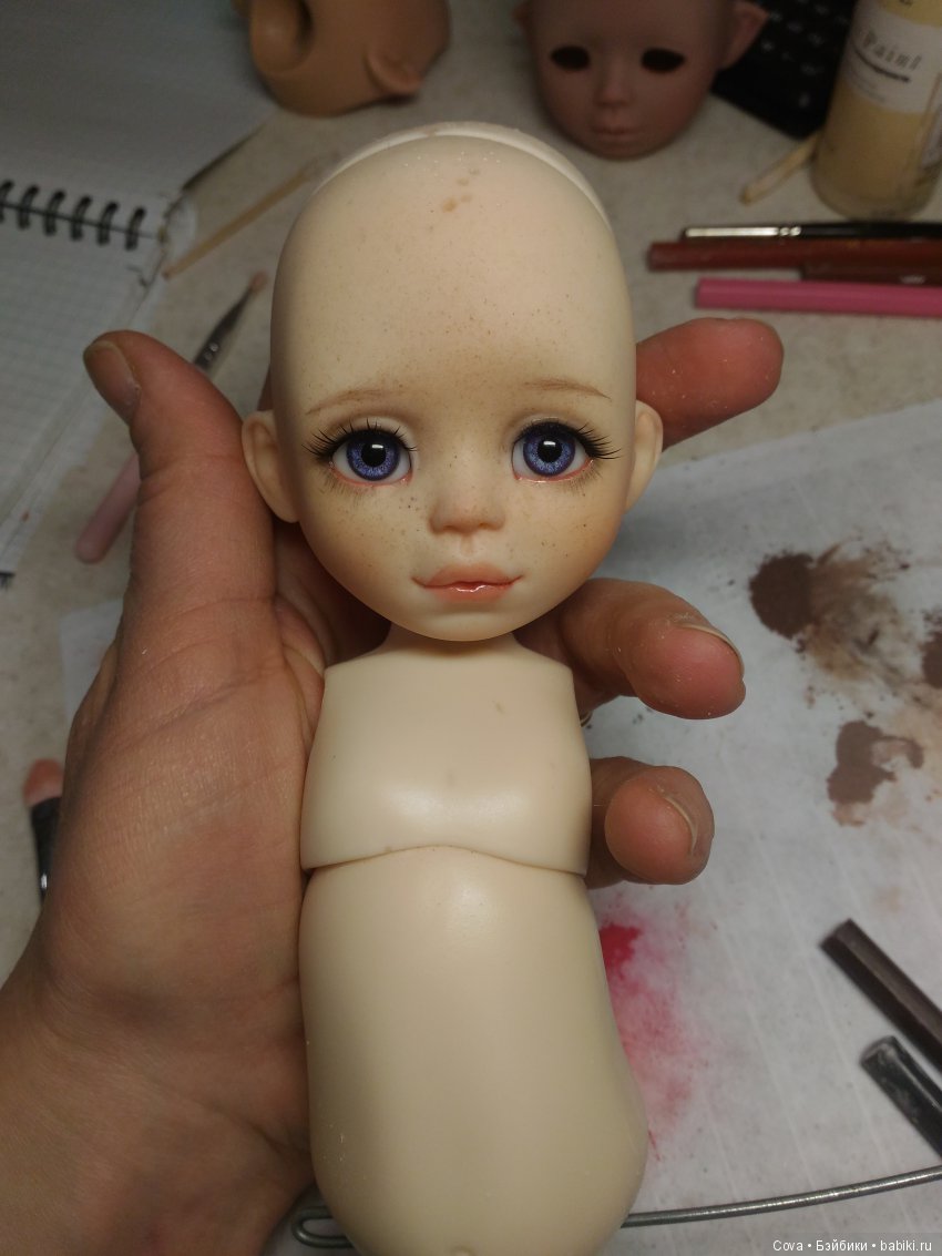 Напомню, рост малышки 30см, глаза 14мм, ножка 4,5см(как у Паолки на старом теле), обьем головы 18см.