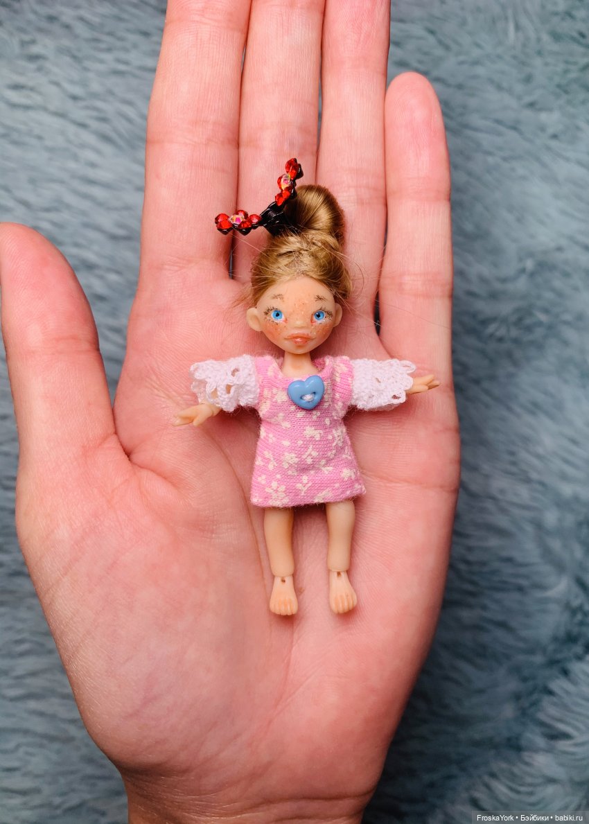 На фотографиях есть совсем крошечные в 5 см куколки, есть побольше.