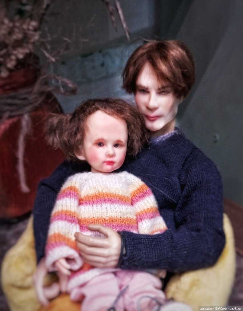 В общем, немножко я приболела. Хотела ребенку сделать новый паричок, но не вышло. И тут случайно попался мне старенький паричок, уж и не помню, на кого делала. Приложила и поняла — не Анютка получилась, а Шурка! Вот прямо настоящая Сашуля, Шурка). Одела ребенка, достала Клавдию Иннокентьевну, — поиграть решила, чтобы настроение себе поднять. И прислушалась. И вот, что я услышала и увидела)