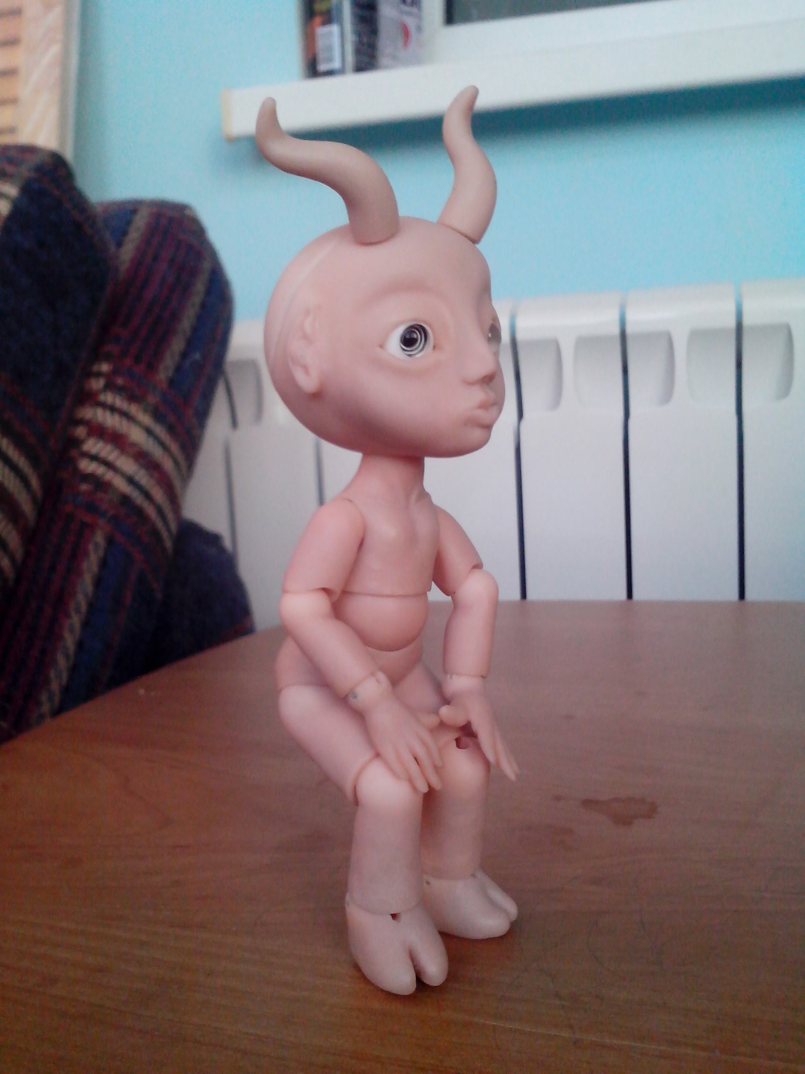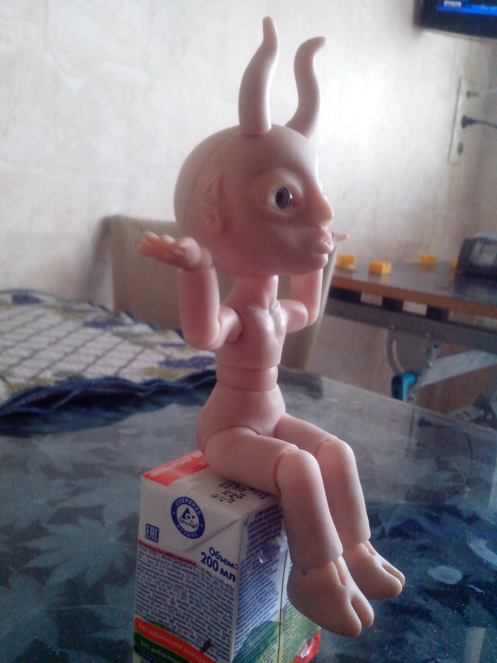 «О! Я и так могу?! Только рога отваливаются… а сидя, не отваливаются. Хотя голова тяжелая...» (Надо облегчить голову — удалить с внутренней стороны часть пластика, главное равномерно, чтобы сохранить баланс фигуры)