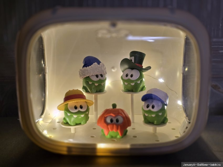 Вообще этот бокс был куплен для коллекции Ам-Нямов (из-за которой чуть не порвали «Вкусно и точка»), принадлежащей старшему сыну. Чтобы пореже стирать пыль с фигурок в его сынарнике. 🐽