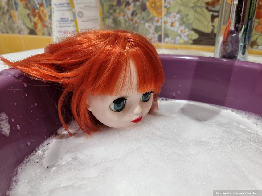 Но не так давно ко мне приехала очень интересная девочка Джесси Файв с ярко-рыжими волосами, стрижкой каре и нежно-лиловыми веками. Скальп окрашен в цвет волос, прошивка явно заводская.