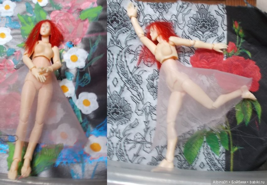 Хотела ей волос до пят, но не понравилось, вдвое обрезала, теперь думаю может ещё укоротить, до плеч… Не получается у меня эта дама, мне кажется она ужасно непропорциональна, громадные руки, ступни корявые… Но хочу доделать, вдруг понравится в готовом виде :)