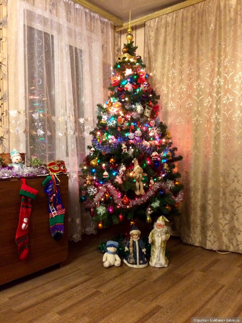Монохром и стильность — не наш конек, поэтому наши елки наряжены «как елки» :) Примерно так: